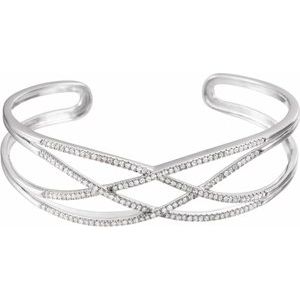 14K White 3/4 CTW Diamond Criss-Cross Cuff 7" Bracelet