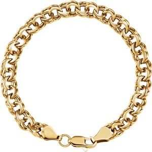 14K Yellow 7 mm Solid Double Link Charm 7" Bracelet