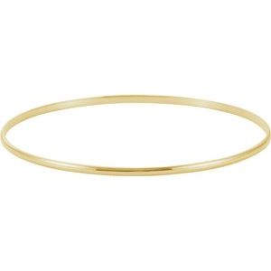 14K Yellow 2 mm Half Round Bangle 7 1/2" Bracelet