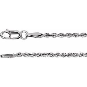 18K White 2 mm Solid Rope 20" Chain with Lobster Clasp