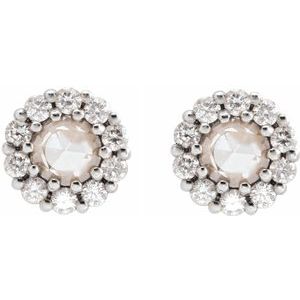 14K White 3/8 CTW Rose-Cut Diamond Halo-Style Earrings