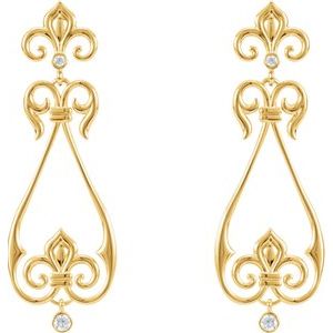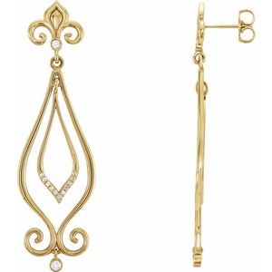 14K Yellow 1/6 CTW Diamond Fleur-De-Lis Scroll Dangle Earrings