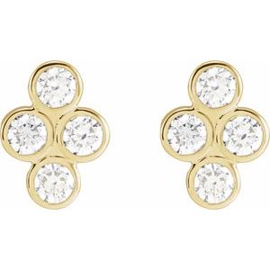14K Yellow 3/4 CTW Diamond Bezel-Set Cluster Earrings