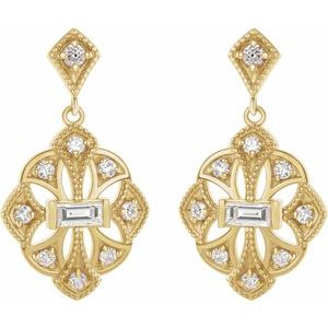 14K Yellow 3/8 CTW Diamond Vintage-Inspired Earrings