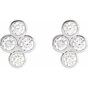 Platinum 3/4 CTW Diamond Bezel-Set Cluster Earrings