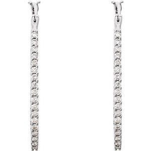 14K White 1 CTW Natural Diamond Inside-Outside Hoop Earrings