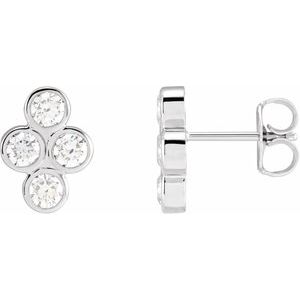 14K White 3/4 CTW Diamond Bezel-Set Cluster Earrings