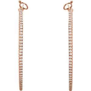 14K Rose 2 3/4 CTW Diamond Inside-Outside 51 mm Hoop Earrings