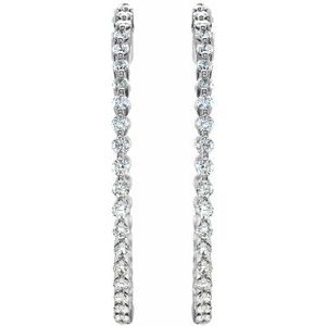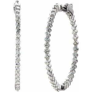 14K White 2 CTW Diamond Inside-Outside Hinged 36.9 mm Hoop Earrings