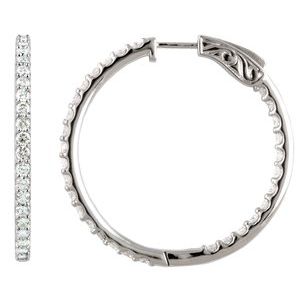 Platinum 14.5 mm 1/4 CTW Natural Diamond Inside-Outside Hinged Hoop Earrings