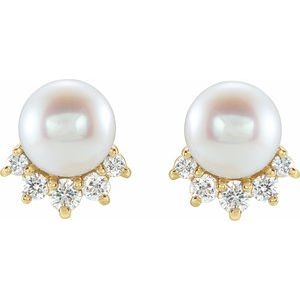 14K Yellow Freshwater Cultured Pearl & .08 CTW Diamond Earrings