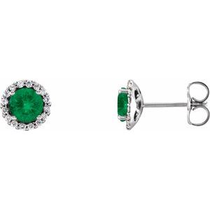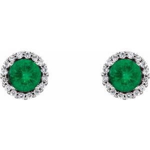 14K White Emerald & 1/8 CTW Diamond Earrings